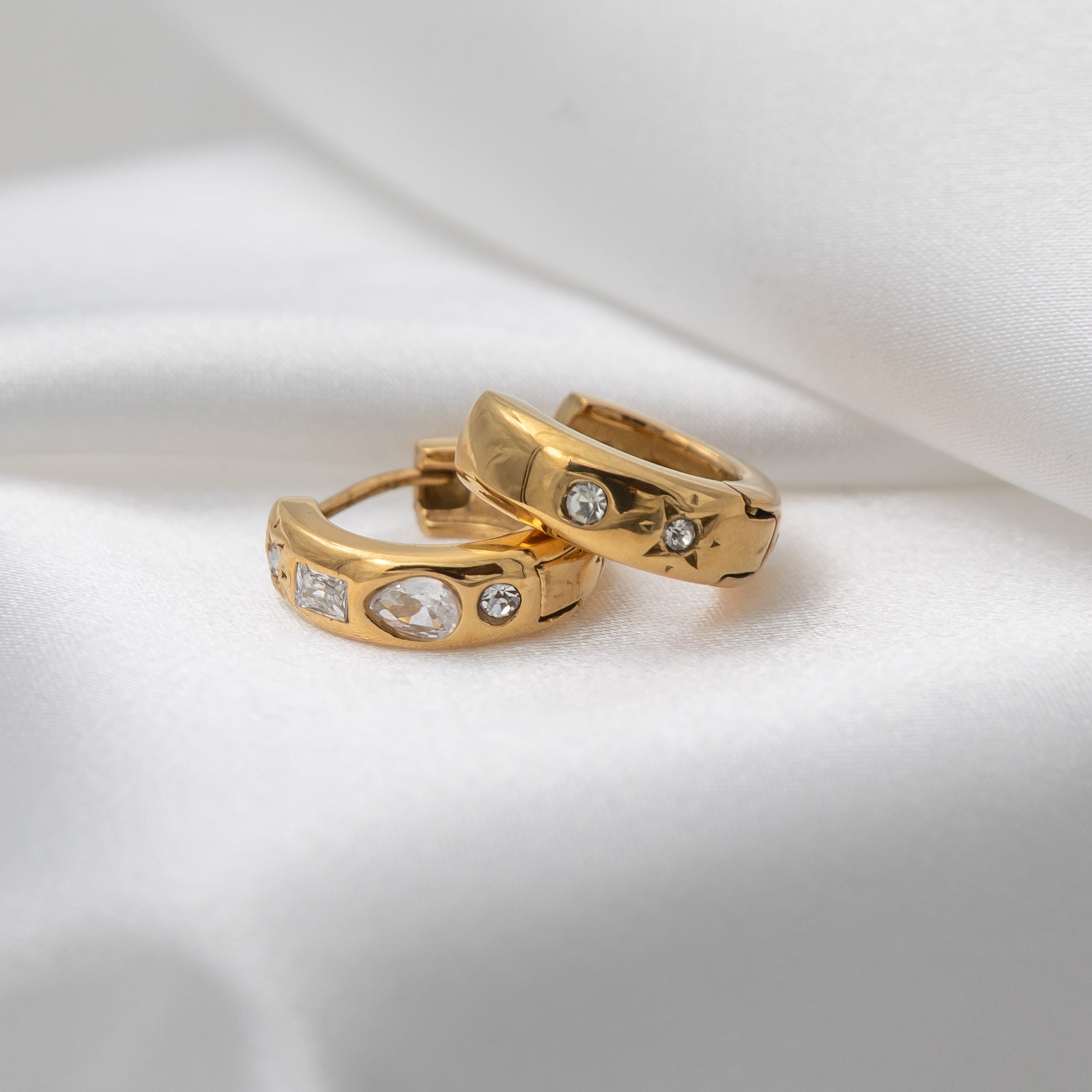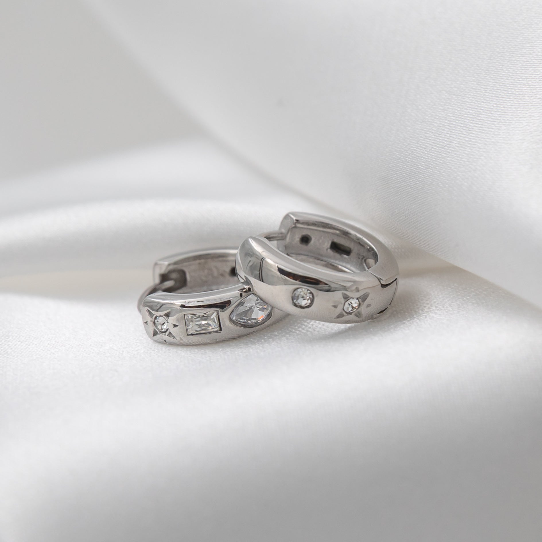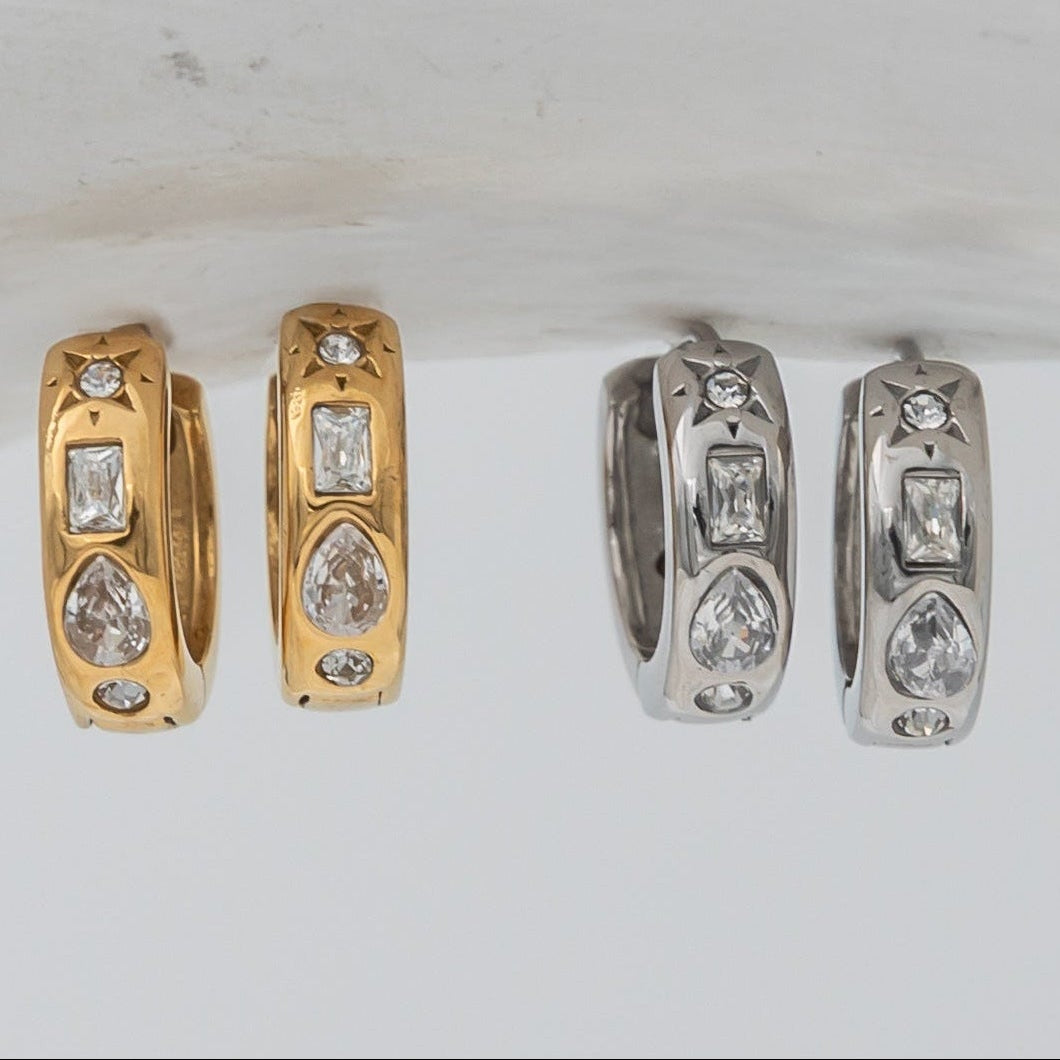 Meet The Luna. A beautiful hoop featuring a constellation of cubic zirconia stones set in a sleek band of gold or silver. Perfect worn alone or stacked with your other Empress Jewel favourites, add a touch of cosmic sparkle to your everyday look with The Luna.