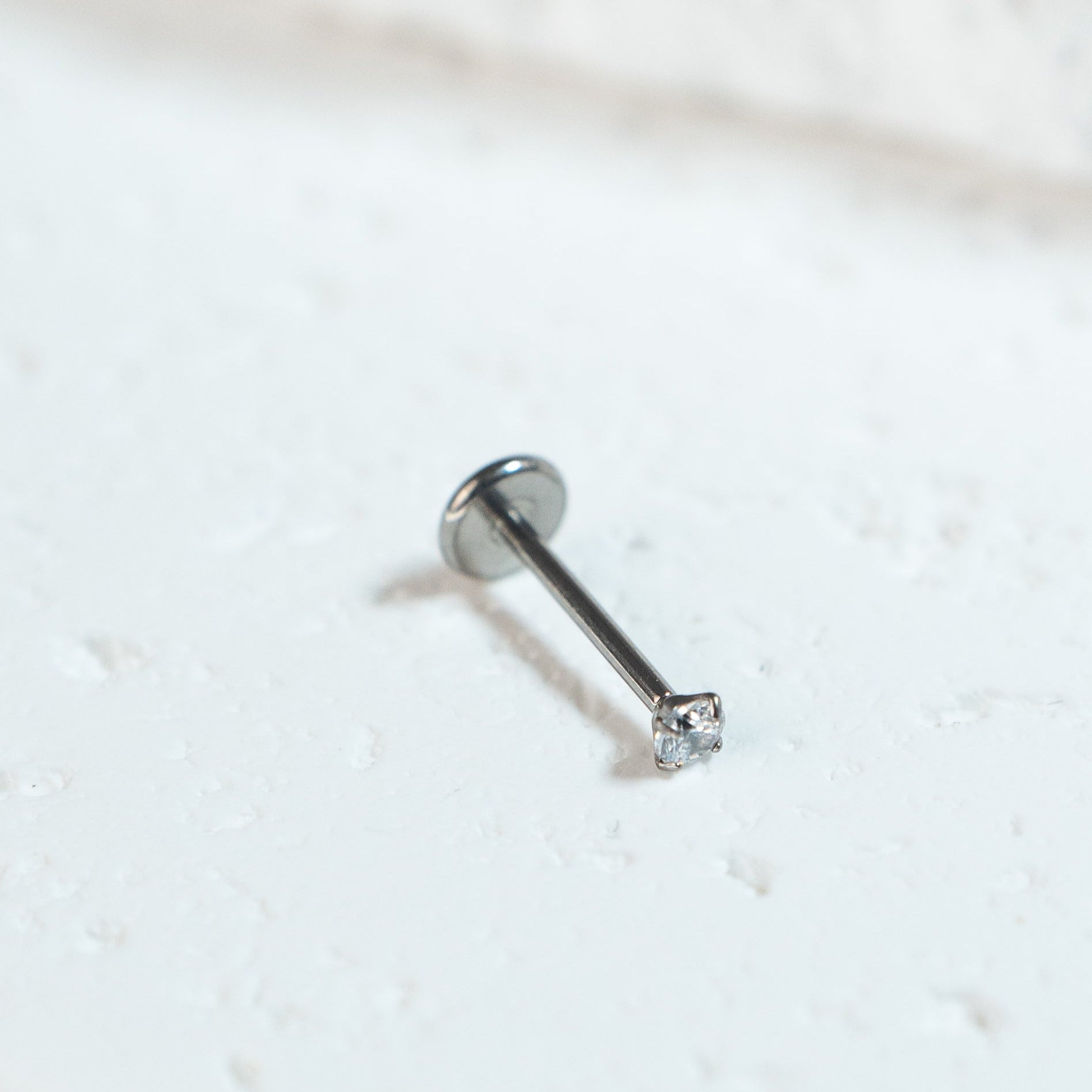 Flat back nose stud with screw on 2mm diamante top. Available in 6mm or 8mm length post.