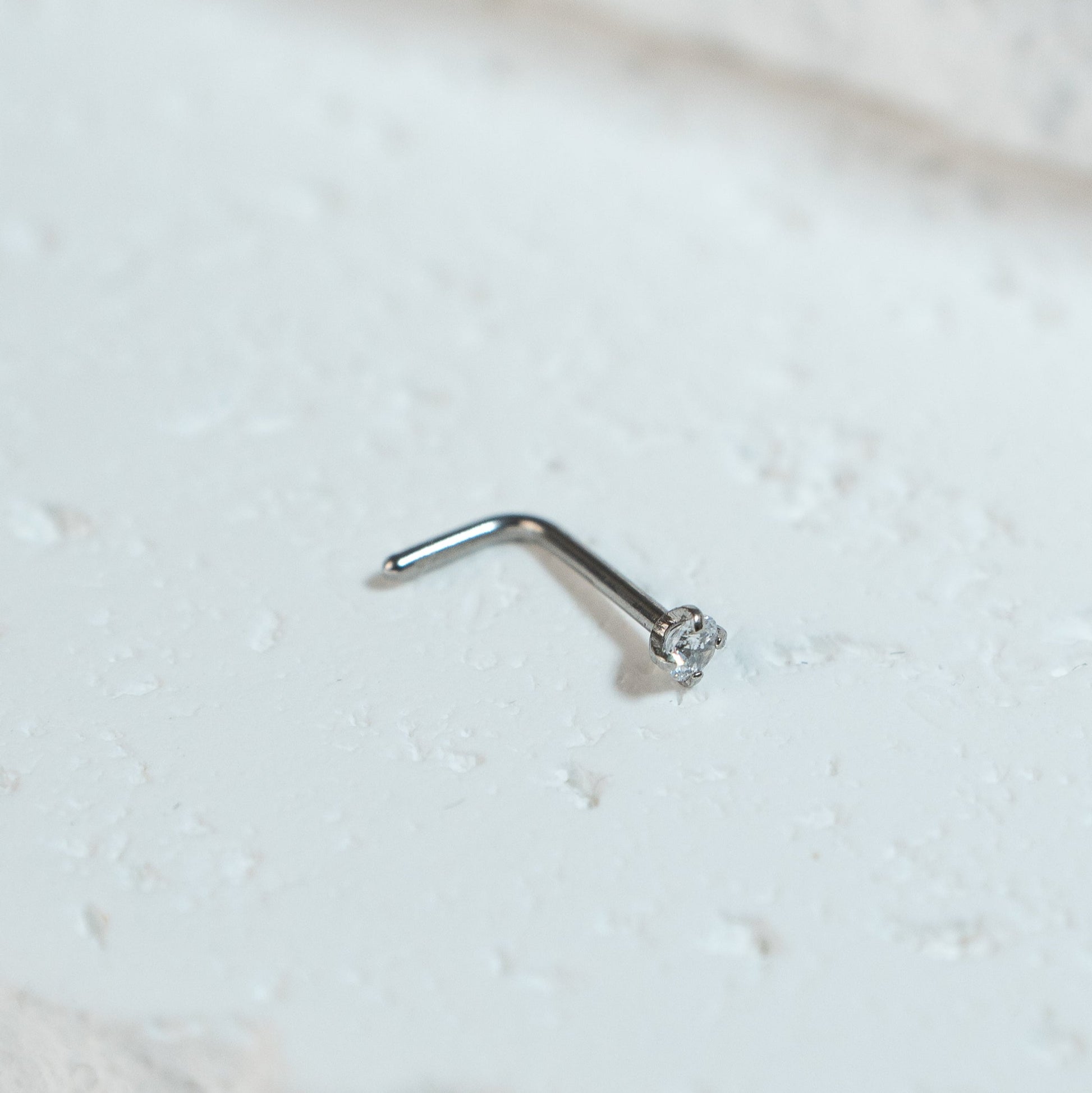 L shape nose stud with 1.5mm diamnte stone. 20g, 7mm post.
