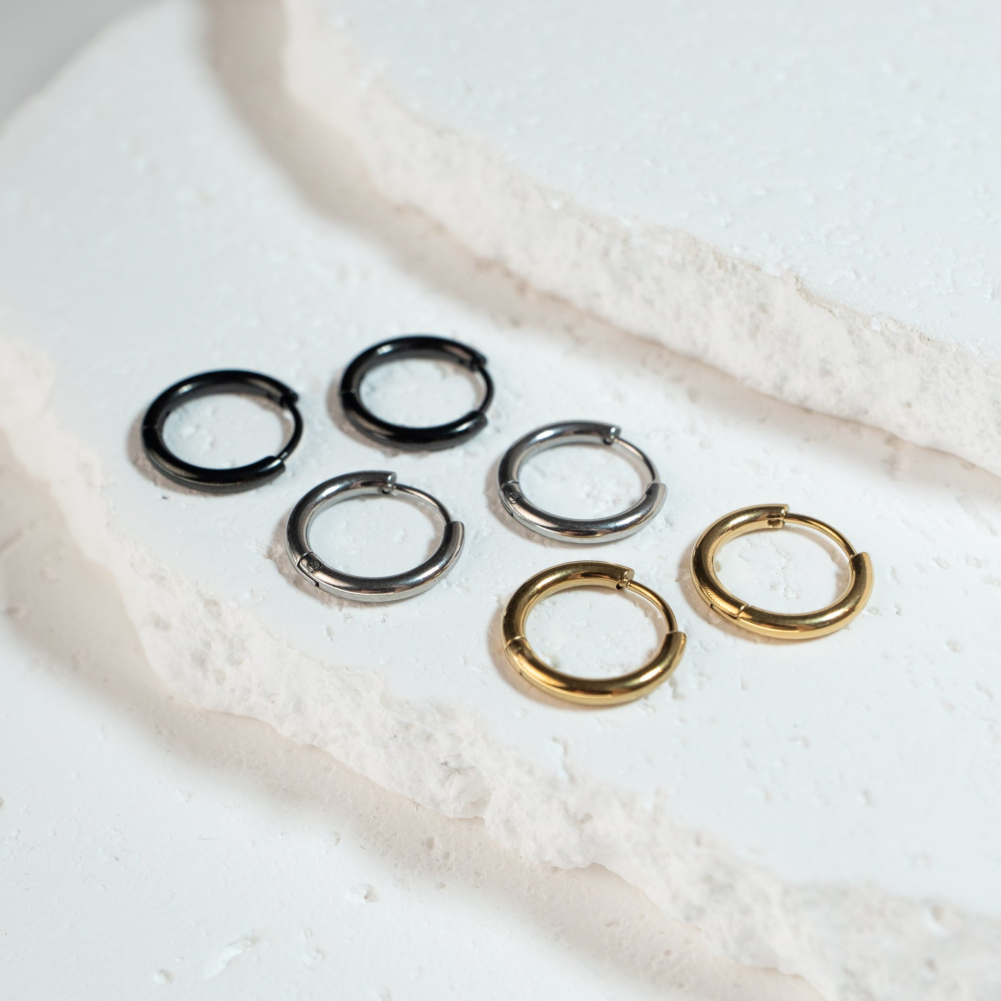 The perfect everyday sleeper. Put them in, leave them in. Available in silver, gold and black. Ranging in size, 8mm, 10mm, 12mm.