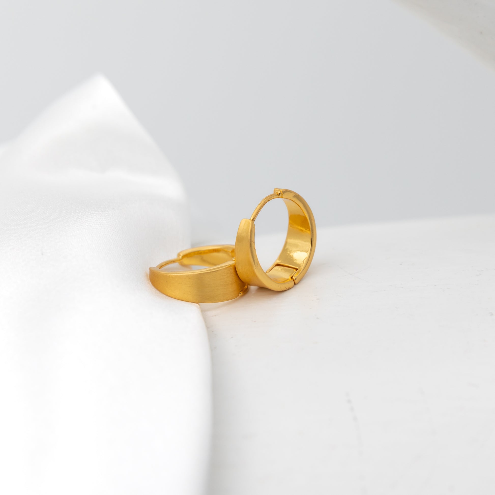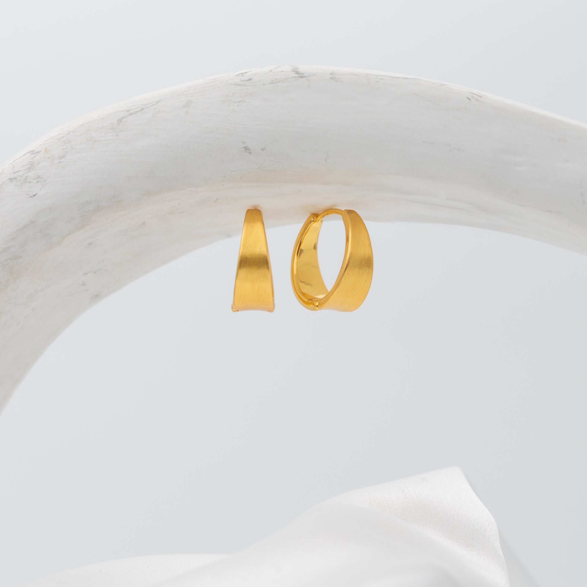 Meet The Solstice. A beautiful hoop, effortlessly chic with a soft satin glow. These classic huggies feature a smooth brushed gold finish that catches the light in a warm understated way. Perfect worn alone or stacked with your other Empress Jewel favourites, add a touch of cosmic sparkle to your everyday look with The solstice.
