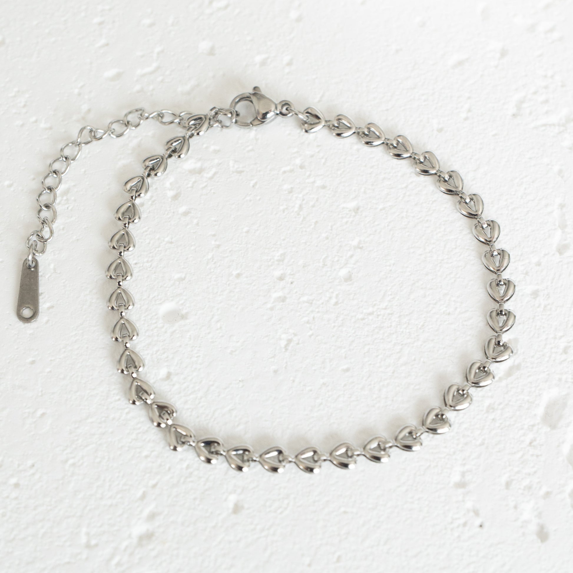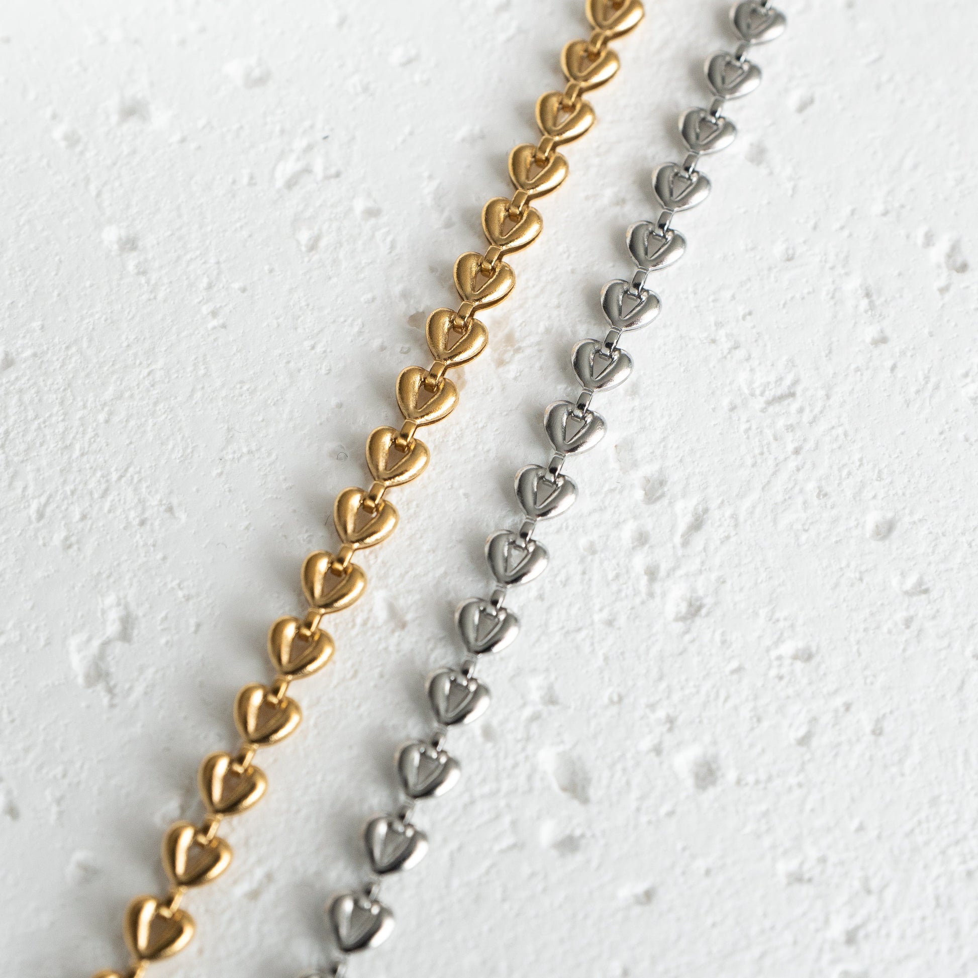 Fall in love with effortless everyday style. Our Sweetheart Chain Bracelet features a delicate row of mini heart shaped links for a subtle romantic touch. Wether your celebrating yourself or gifting to someone special this piece is made to signify love, friendship and those lovely little moments that make life special.